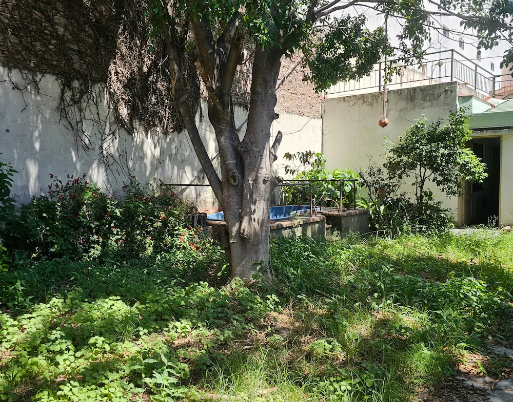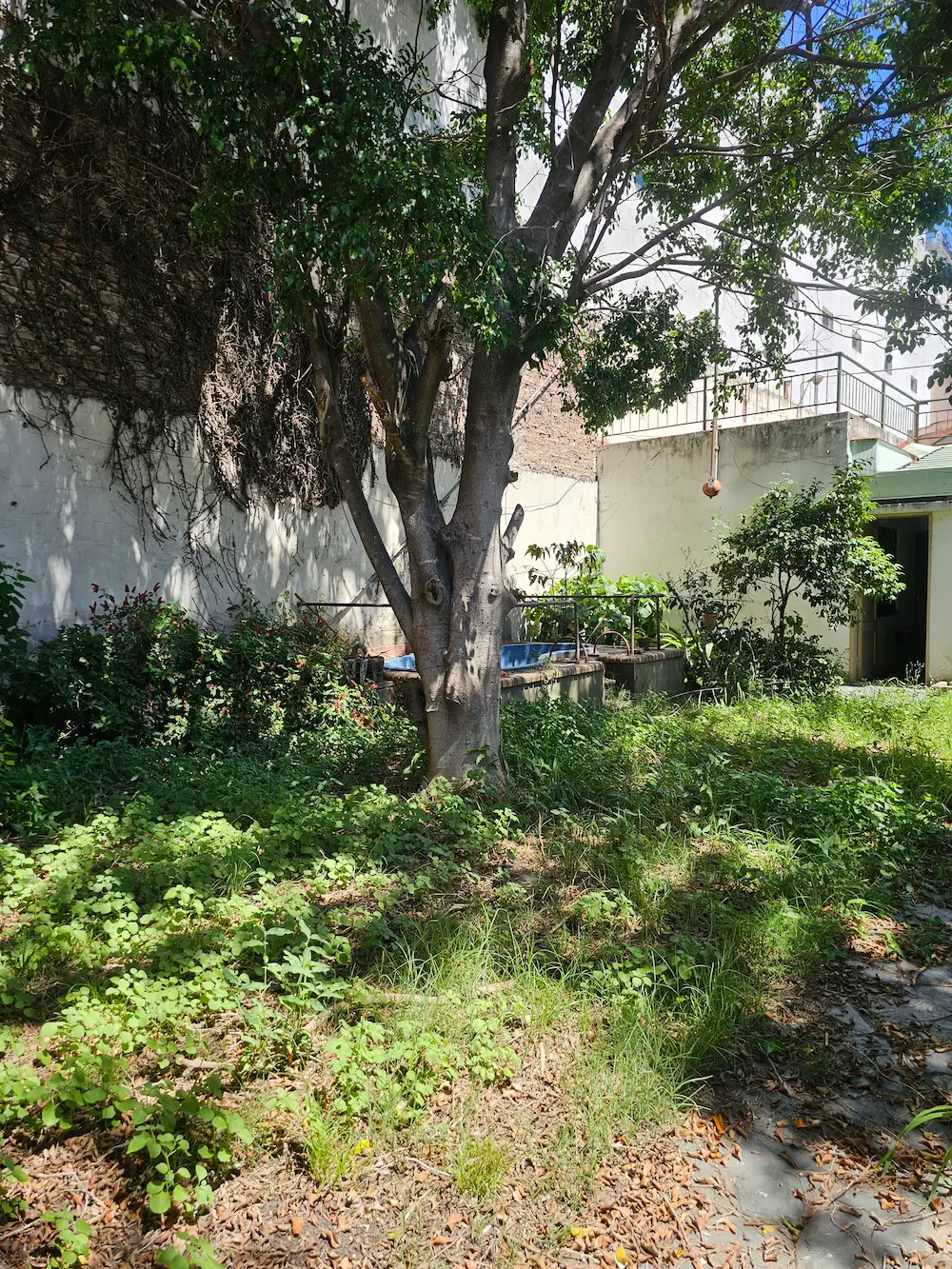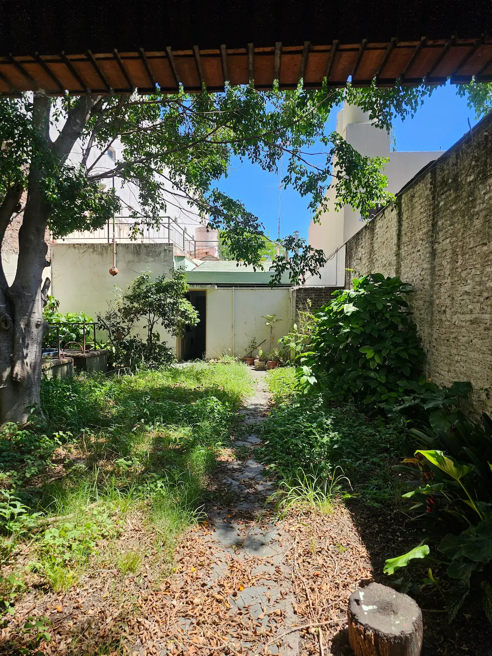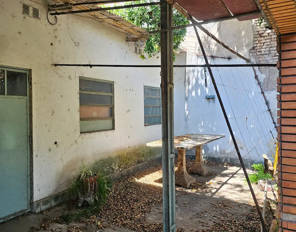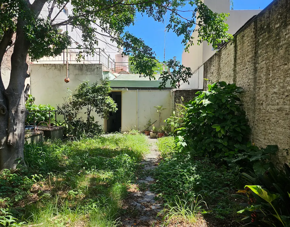 Patio – quincho – terraza y fondo libre con verde y pequeña pileta.