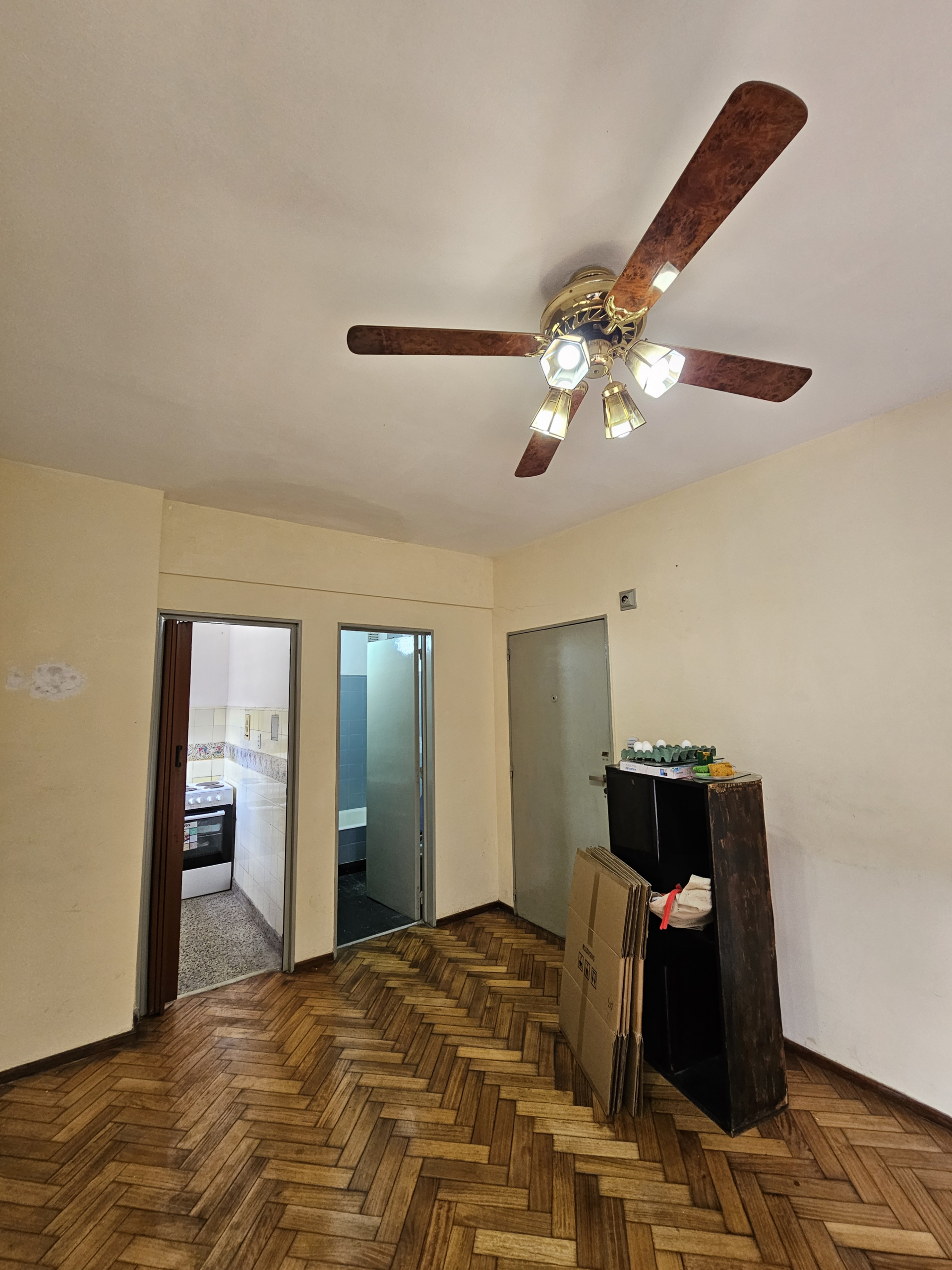 Departamento en primer piso por (ascensor) al frente. Monoambiente con placar y ventilador de techo – cocina y baño completos. Balcón corrido. Estado general: muy bueno. Expensas bajas. (Sin gas instalado).